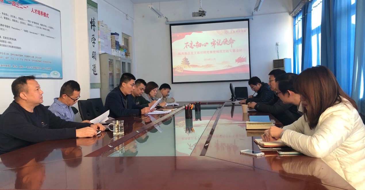 根据学校“不忘初心、牢记使命”主题教育工作部署安排,11月19日上午,机关第四党支部召开对照党章党规找差距专题会议,学校主题教育指导督查二组副组长张廷发同志到会指导。会议由杜建彬同志主持,机关第四党支部全体党员参加。