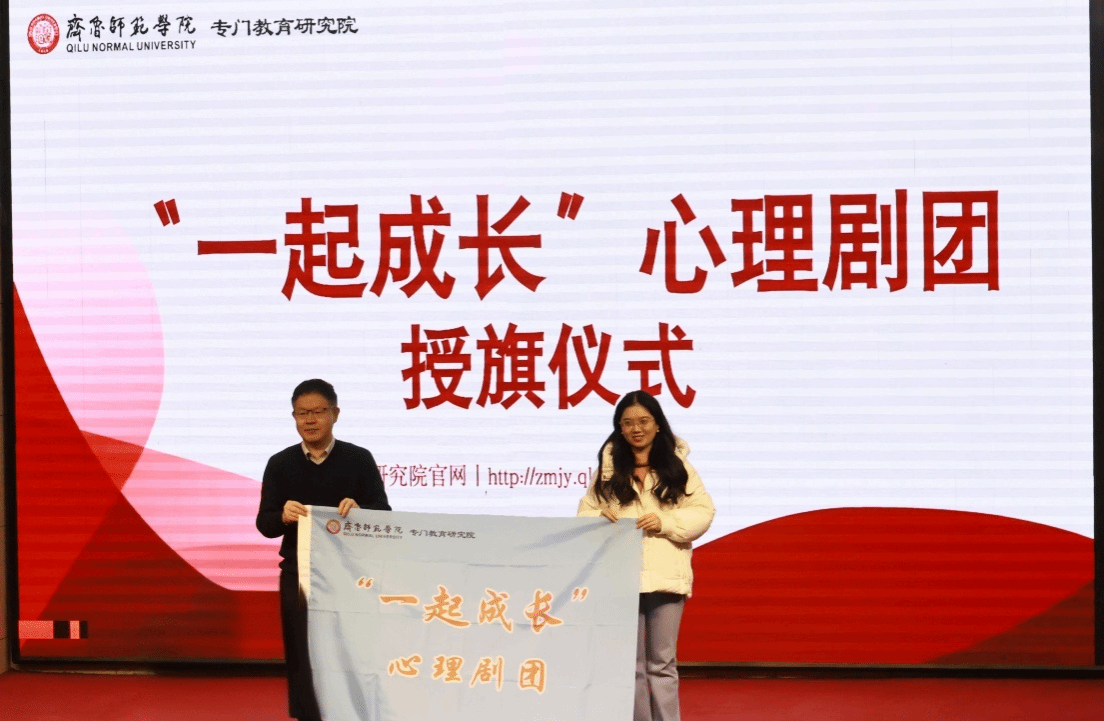 活动最后,刘增军为专门教育研究院“一起成长”心理剧团授旗,标志着该剧团正式成立。剧团将依托专业资源,通过心理剧形式丰富专门教育实践平台。