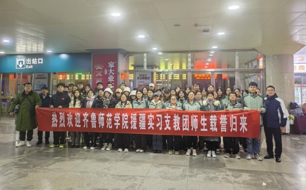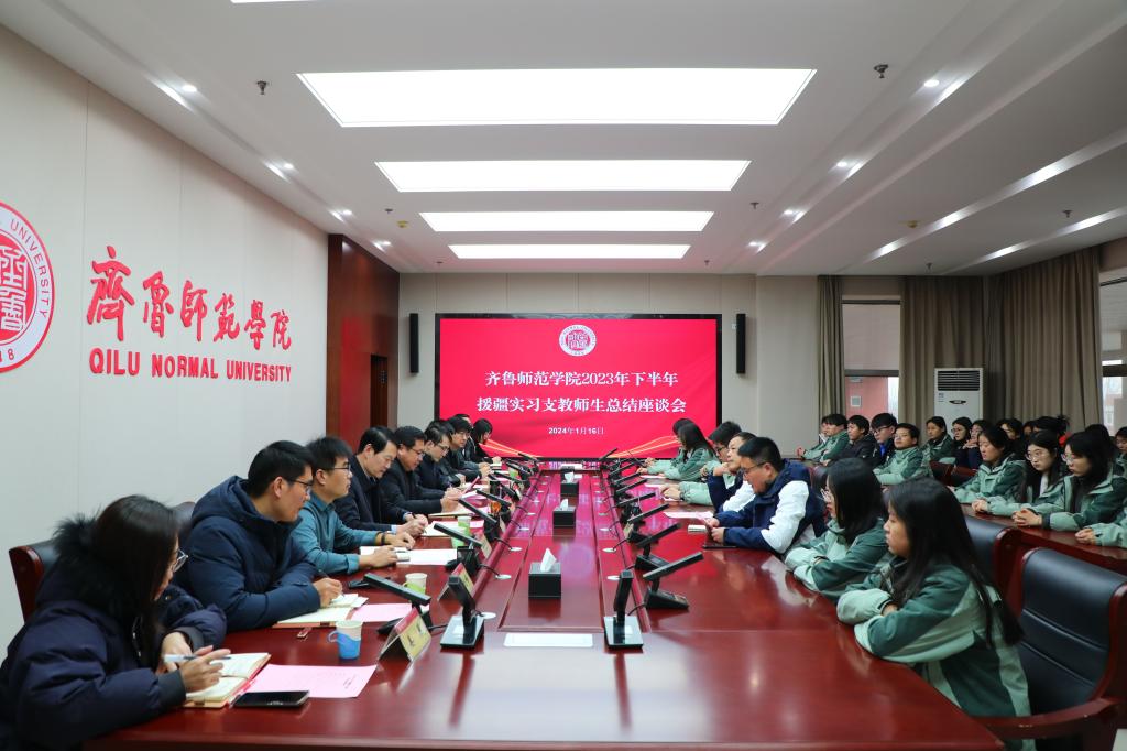 1月16日清晨,齐鲁师范学院第四批暨2023年下半年援疆实习支教师生圆满完成支教任务顺利返济。当日上午,学校在章丘校区第二会议室召开援疆实习支教工作总结会,总结支教先进经验,欢迎师生载誉归来。学校党委副书记、校长郑秀文出席会议并与师生亲切座谈,会议由党委委员、副校长孙正主持。
