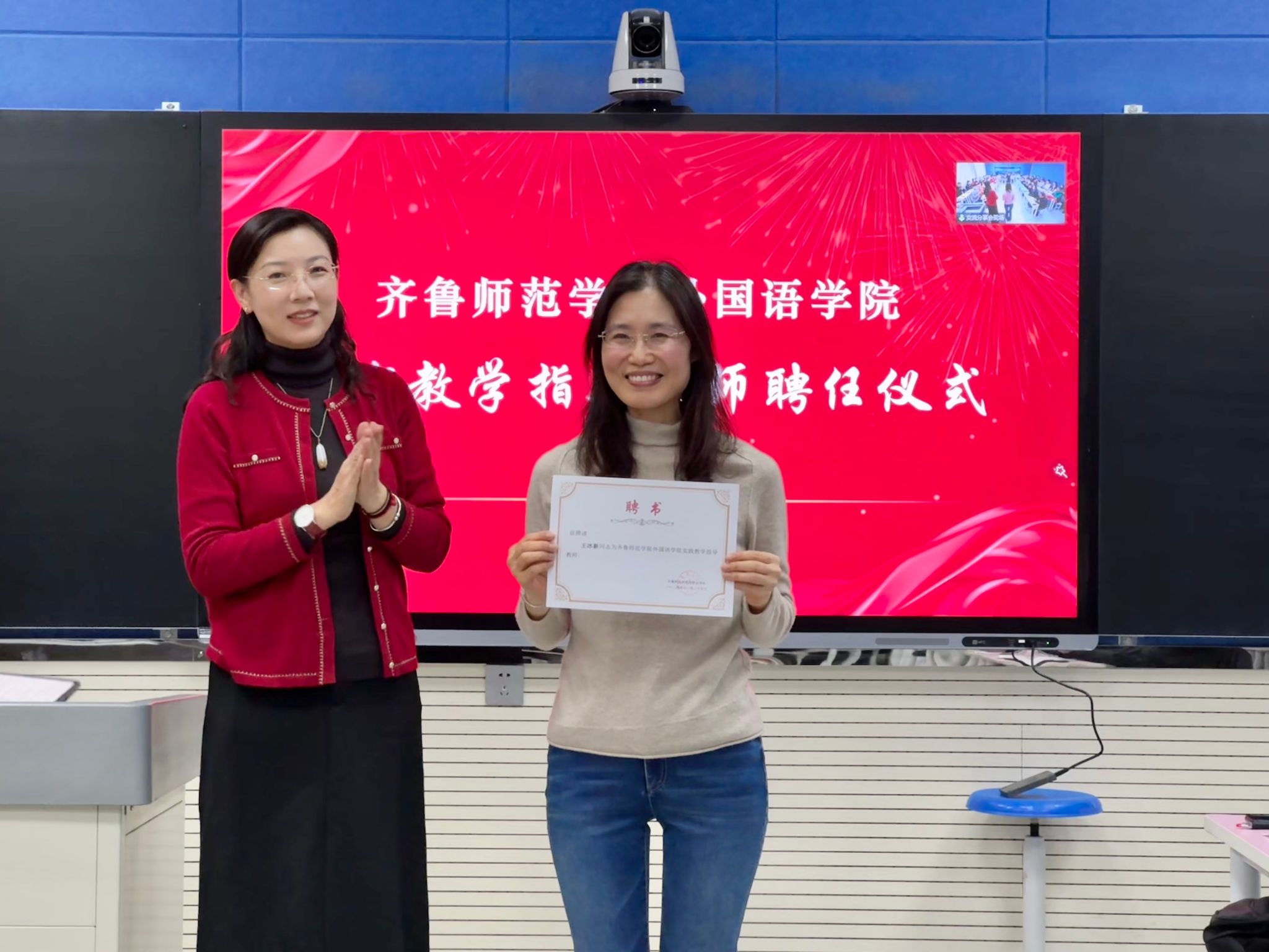 会上,赵青向外国语学院特聘教学实践指导王冰新颁发了聘书,并对其两度援疆支教和为麦盖提县英语教学做出的贡献及取得的成绩表示真诚的感谢和由衷的赞扬。