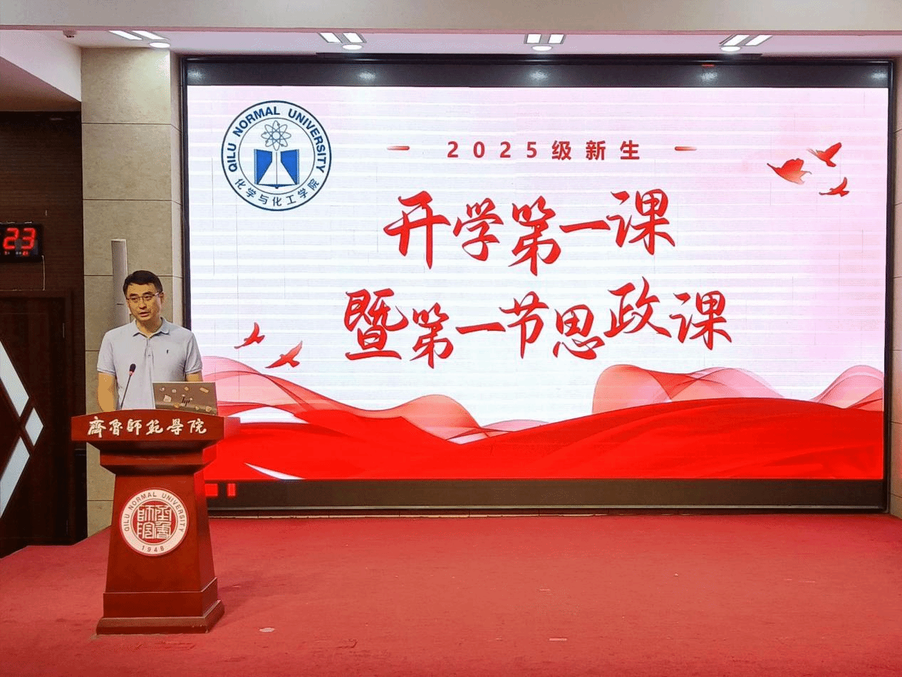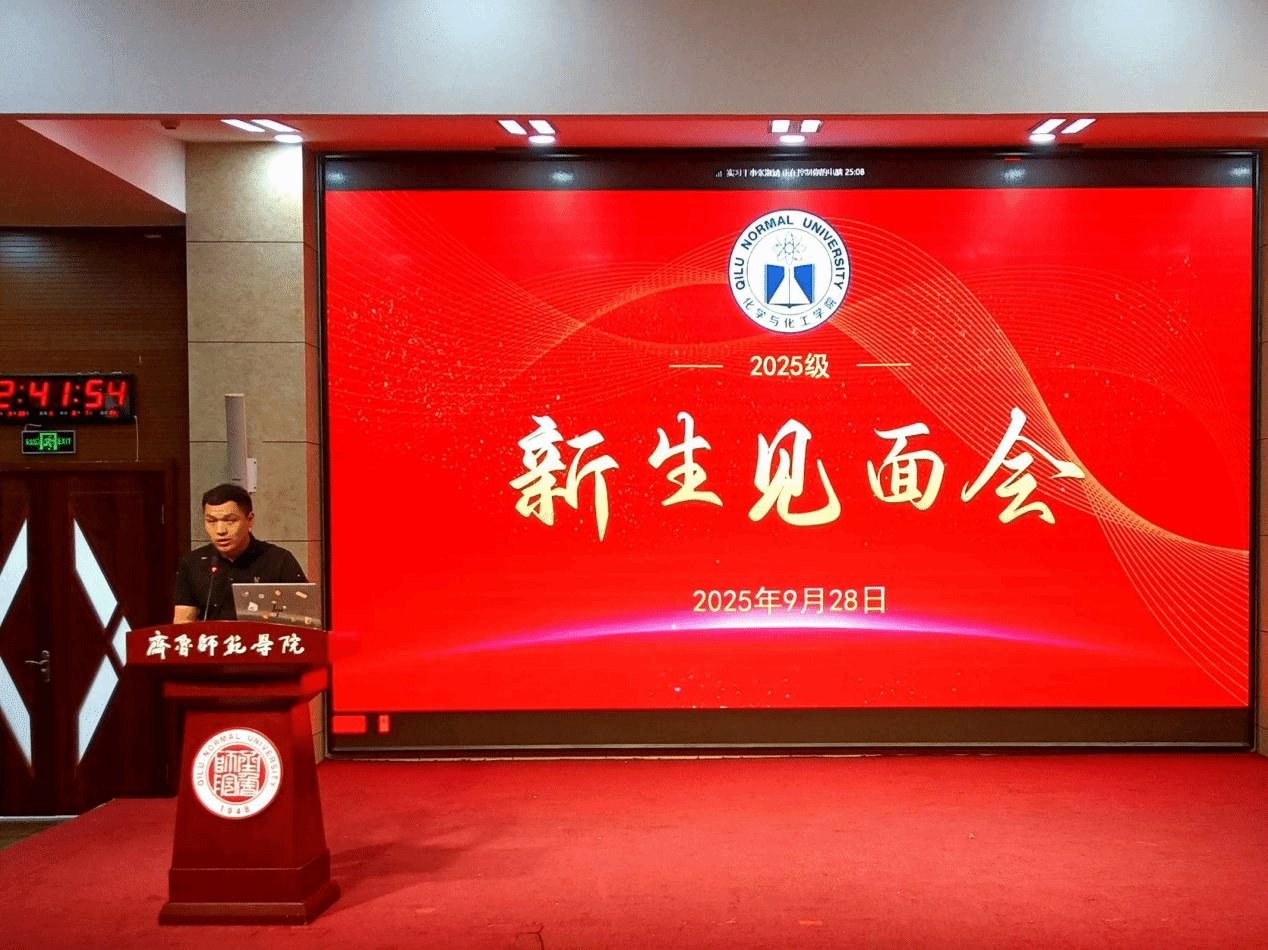 为引导2025级新生筑牢思想根基、加快身份转变、更好融入大学生活,增进师生交流与感情,9月28日中午,化学与化工学院于章丘校区第一学术报告厅举行2025级新生见面会暨开学第一课,学院党政领导班子成员、全体辅导员、2025级新生班主任及全体新生参加。会议以线上+线下的形式同步进行。活动由学院党委副书记梅茹主持。