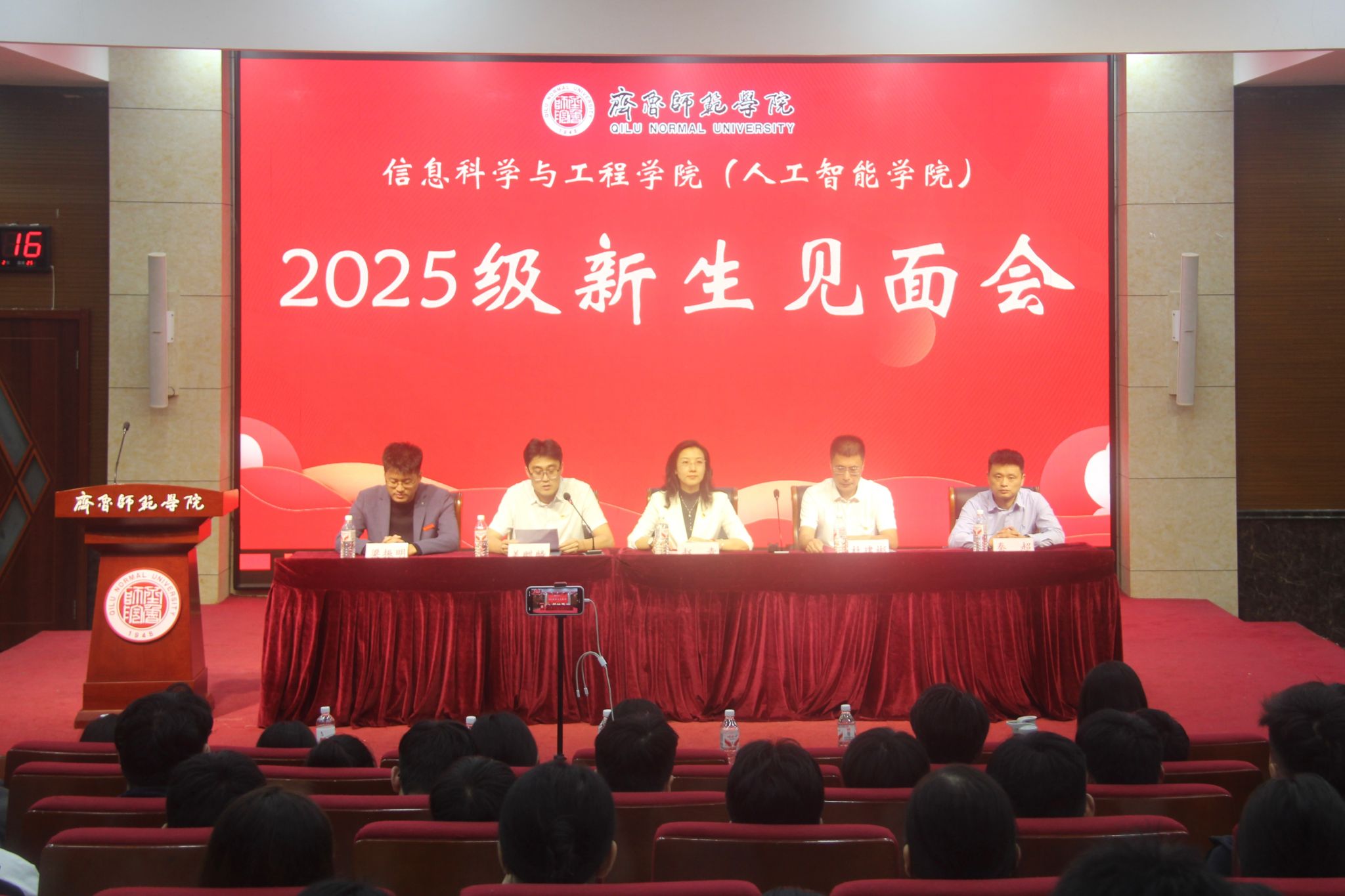 擎光为炬照亮征途,科创赋能擘画新篇。9月23日,信息科学与工程学院(人工智能学院)于章丘校区第一学术报告厅召开2025级新生见面会暨开学第一课。学院党委书记赵青、院长杜建彬、党委副书记姜麒麟、副院长秦超、副院长(挂职)梁振明,团总支、办公室老师出席本次活动。会议由姜麒麟主持,新生辅导员、班主任、教师代表、2025级全体新生及家长以线下线上相结合方式同步参会。