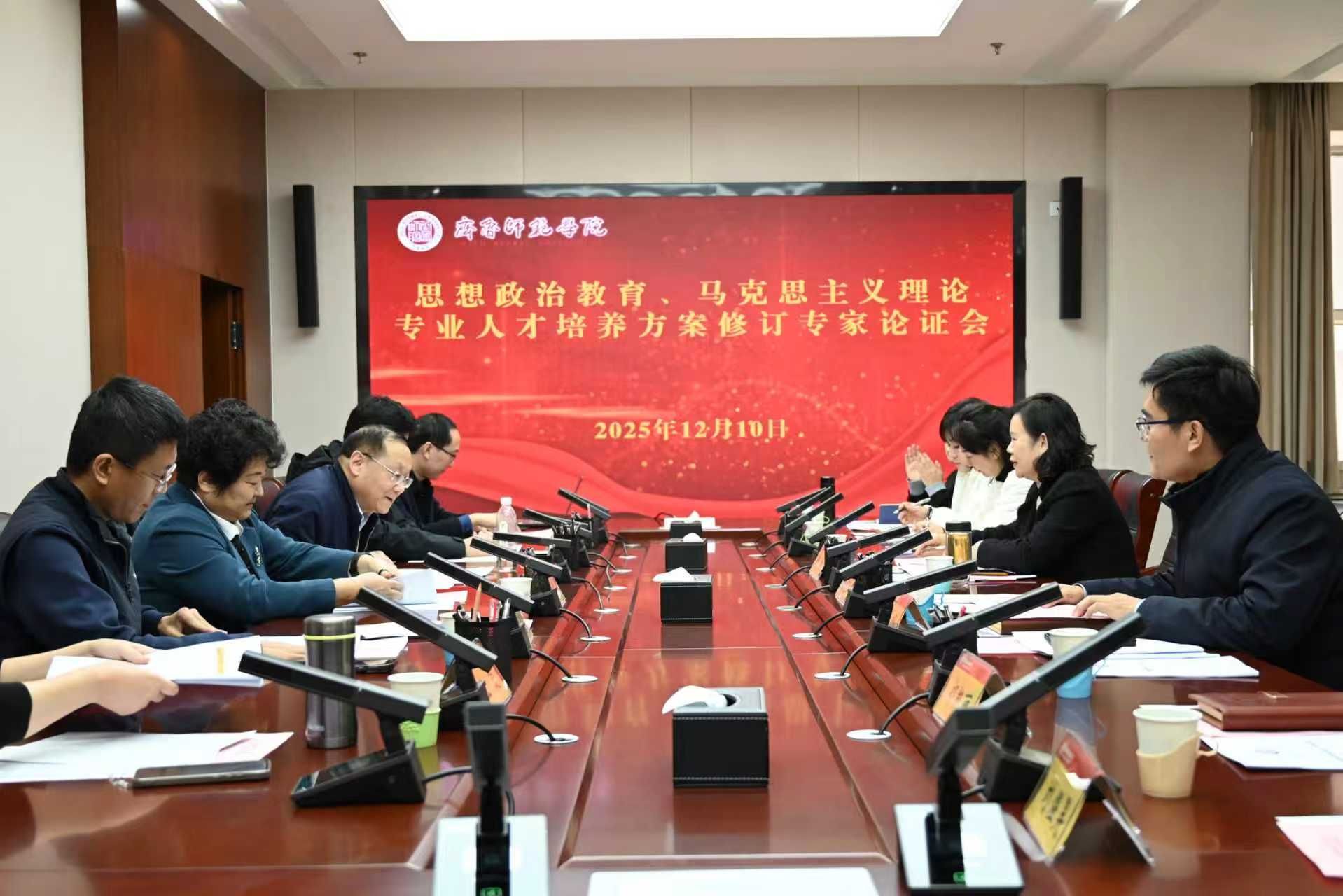 党的二十大代表、济南市章丘区三涧溪村党委书记高淑贞,天津师范大学新时代马克思主义研究院执行院长杨仁忠教授,山东师范大学马克思主义学院院长王增福教授,聊城大学马克思主义学院院长刘子平教授,济南市教育教学研究院教研员左霞,齐鲁师范学院附属中学(章丘中学)副校长贾允卿等六位专家组成人才培养方案论证专家组。