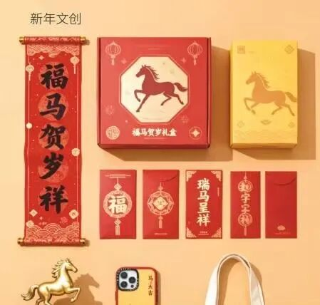 2025级工艺美术班毛语桐以“骏风纳福”为核心主题,结合马年生肖文化与春节礼赠场景,打造兼具传统年味、视觉美感与实用功能的礼盒产品,搭配红金配色与骏马图案,辨识度高,兼顾质感与性价比,具备明显差异化优势。