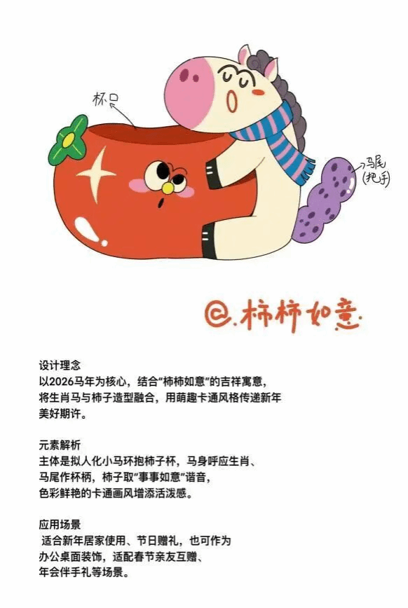 除此之外,还有很多其他同学的优秀作品,分别从文创产品设计、校园IP形象设计等方面展示了他们心中美好的马年愿景,将设计与商业相结合,打造出属于美院学子的创意产品,唤醒文化认同与消费热情。