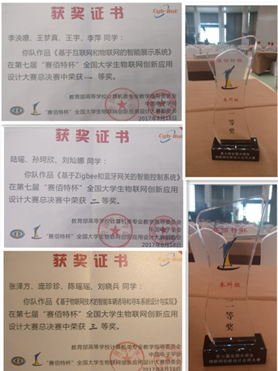 2017年8月17日,在北京市丰台区园博园举行的第七届全国大学生物联网创新应用设计大赛中,我校由信息科学与工程学院师生组成的三支参赛代表队伍分别斩获本科组一、二、三等奖各一项。