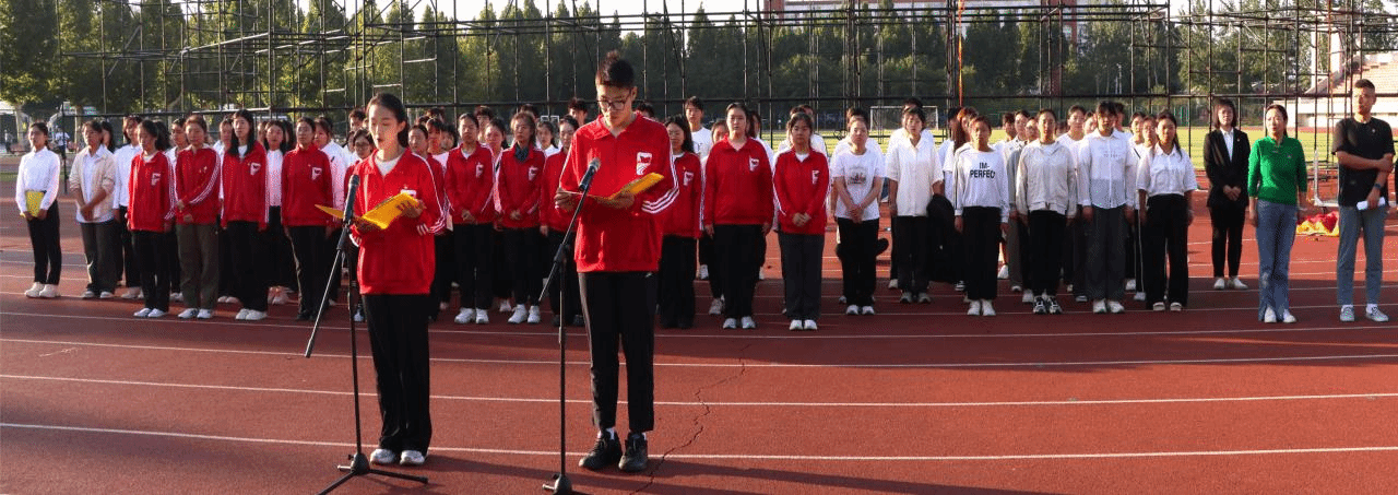 为深入学习贯彻党的二十大和二十届三中全会精神,大力弘扬教育家精神,热烈庆祝中华人民共和国成立75周年,加强爱国主义教育,9月29日,马克思主义学院在章丘校区体育场开展“大力弘扬教育家精神 青春奋进新征程”迎国庆主题升旗仪式暨国旗下的思政课活动。学校团委书记赵旭,马克思主义学院党委书记郭百灵、院长赵立峰、团总支书记王雅文,学院2024级新生、学生党员代表参加活动。活动由学院党委副书记毛雯主持。