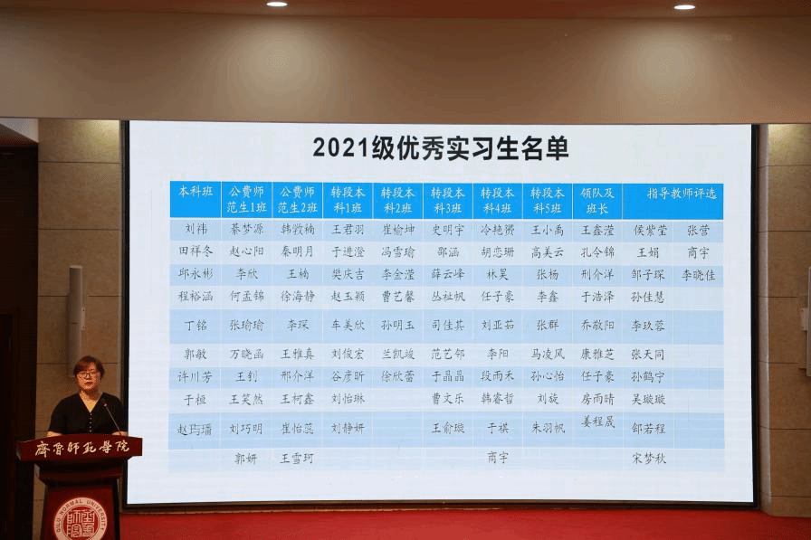 会议伊始,王蕾宣读了优秀实习生名单。她对优秀实习生进行充分的赞扬与肯定,希望同学们能够向优看齐,将实习期间积累的经验与智慧转化为推动理论探索和职业发展的动力,以饱满的热情投身到教育事业之中。