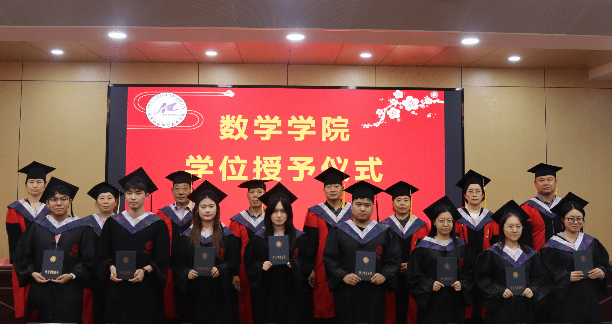 最后,数学学院学位评定分委员会委员为学士学位获得者颁发学位证书并拨穗。