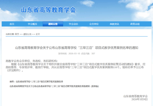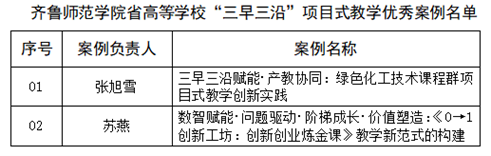 近日,山东省高等教育学会公布了山东省高等学校“三早三沿”项目式教学优秀案例认定结果,齐鲁师范学院喜获佳绩,共有2项教学案例成功入选,充分彰显了学校在高等教育人才培养模式创新、教学改革实践方面的显著成效。